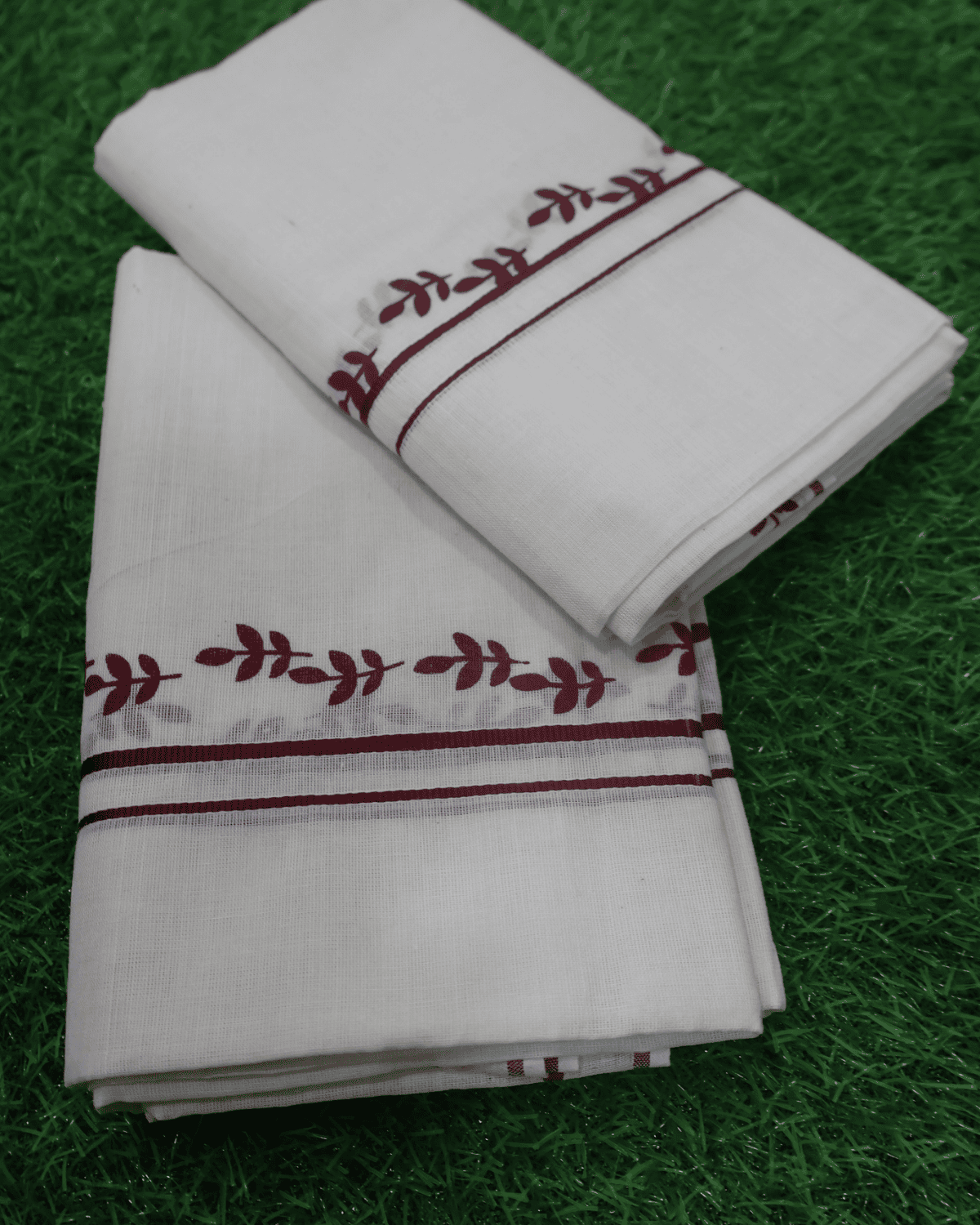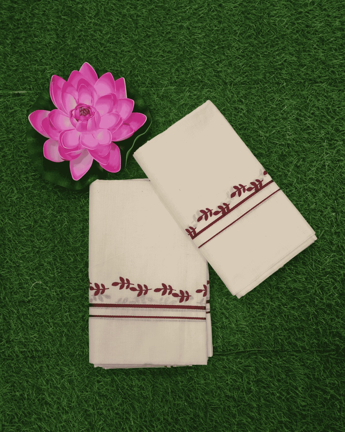 Women’s Kerala Cotton Set Mundu Single 2 Pieces Maroon Border Saree (Set Mundu)
